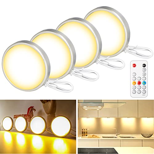 Wobane キッチン用ライト 電球色 4個セット 連接可能 ledキャビネットライト リモコン付き 明るさ調整 時間設定
