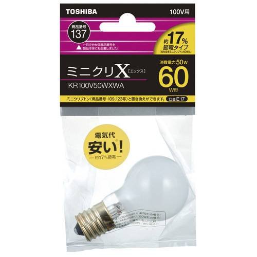 東芝 ミニクリプトン電球 《ミニクリX》 100V 60W形 ホワイト E17口金 17%節電設計 フック包装 KR100V50WXWA