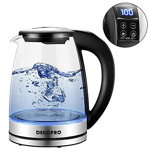 DEKOPRO 電気ケトル 1.8L 大容量 ケトル ガラス 温度調節 保温機能付き 空焚き防止 自動電源OFF 湯沸かし器 ゆわか