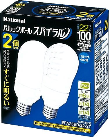 パナソニック パルックボールスパイラル ボール電球100型タイプA25形 2個入 パルックDay色 EFA25ED222T