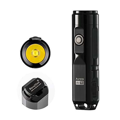 RovyVon A4xチタン懐中電灯キーホルダー、450ルーメン、Nichia LED小型トーチ、70分充電式ロー/ミディアム/ハイ/ス