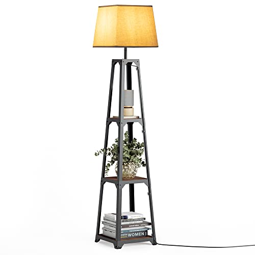 WAMPAT フロアライト ラック付き LED E26 間接照明 スタンド おしゃれ 引き線スイッチ リビング 寝室 書斎 適用 ウ