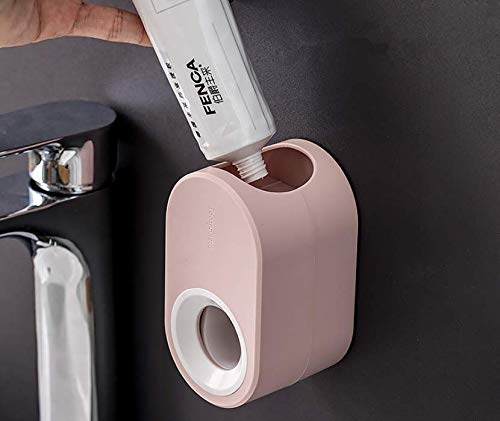 壁掛け式 自動歯磨き粉ディスペンサー 使用便利 取り付け簡単 穴開け不要 取り外し可能 洗える 家族用 (ピ