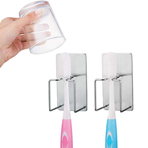 Senbowe 2個セット 歯ブラシスタンド 3Mビスコース 歯ブラシホルダー 壁掛け ステンレス 電気歯ブラシ カップホ