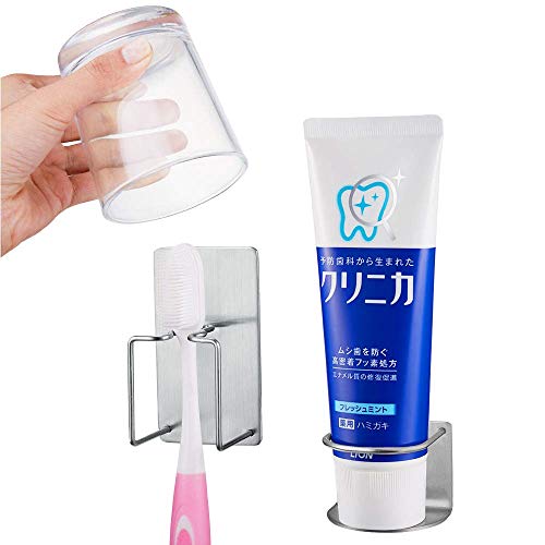 Senbowe 2個セット 1つの歯ブラシスタンド 1つの歯磨き粉ホルダー 3Mビスコース 歯ブラシホルダー 壁掛け ステン