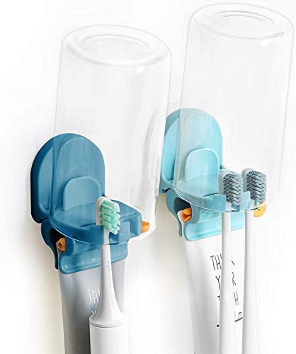 壁に取り付けられたInmorven歯ブラシホルダー2パック、多機能歯磨き粉スクイーザー、省スペースの歯ブラシホ