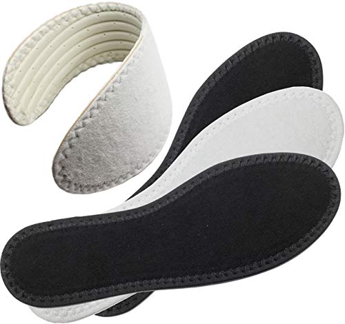 (ワイエルワイ) 中綿のタオル表層の、柔らかい、汗を吸収し、防臭する超薄い靴の下敷き (22.3×7.5cm, 黒と白一