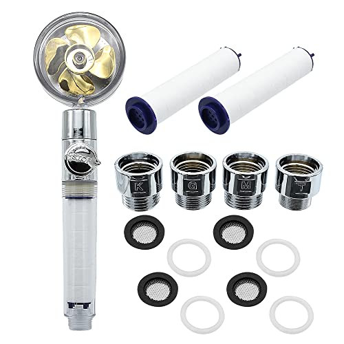 シャワーヘッド 360°回転 ファン内蔵 増圧仕様 極細水流 手元止水機能 簡単取り付け フィルター付属