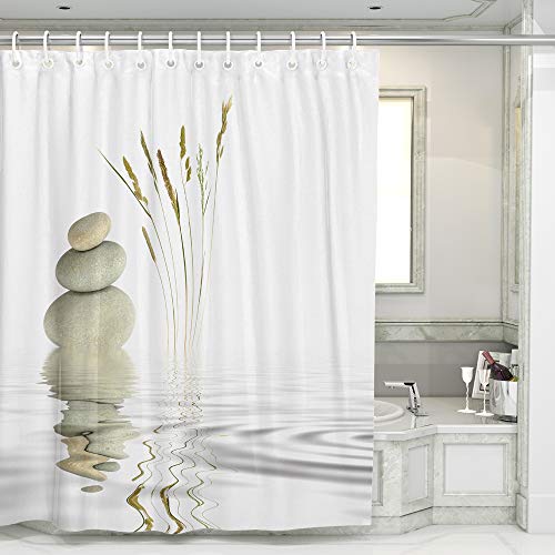 シャワーカーテン 耐久性のある生地 浴室カーテン 無臭 防水 水洗える 間仕切り (結石 1)