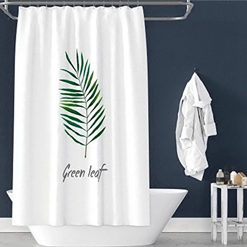 Simple Life 北欧風 リーフ柄 厚手 シャワーカーテン 間仕切り 防水 防カビ 目隠し用 遮光用 バスカーテン フック