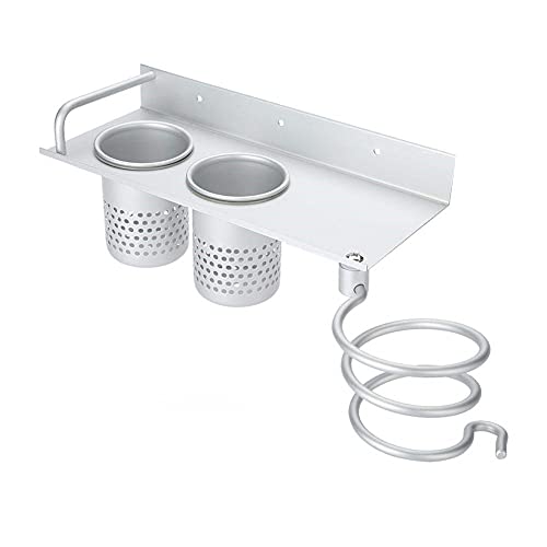 ヘアドライヤーホルダー 壁掛け式 自由回転可能 収納カップ2つ付き バスルーム ベッドルーム 洗面所 理髪店