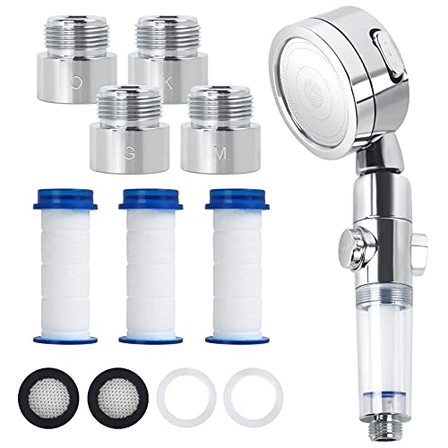 VIPMOON シャワーヘッド 【2021透明 80%節水シャワー 増圧 塩素除去 手元止水ボタン 3段階モード 水量調節 角度調