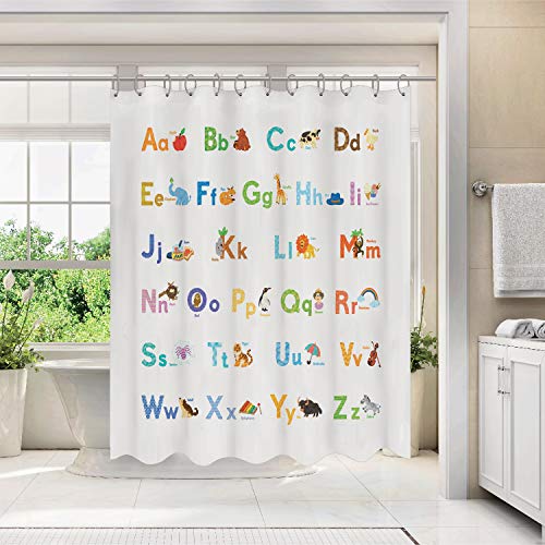 BASHOM BSC-608 ABC 学習 アルファベット 子供のためのシャワーカーテンセット 防水 洗える 装飾 浴室 71''x71'' (180x18