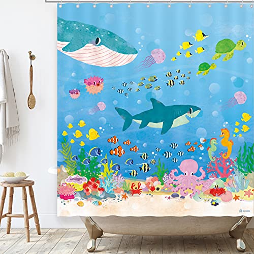 BASHOM BSC213 アンダー?ザ?シー 子供のためのシャワーカーテンセット 防水 洗える 装飾 浴室 71''x71'' (180x180cm) ポ