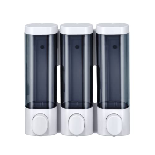 PREMM マグネット で簡単取り付け 壁掛け シャンプーディスペンサー (トリプル 300ml x 3, ホワイト)