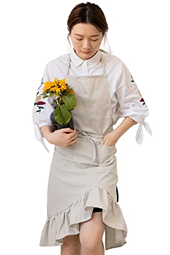 TONGMO エプロン おしゃれ カフェエプロン ロング かわいい レディース ロング丈 首掛け式 保育士フリーサイズ