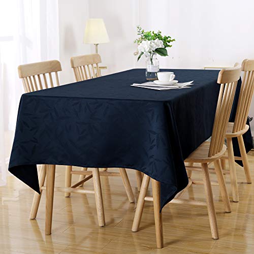 Deconovo テーブルクロス ジャカード生地 防水 おしゃれ 家庭用 竹の葉柄 撥水加工 紺色 140cmx180cm