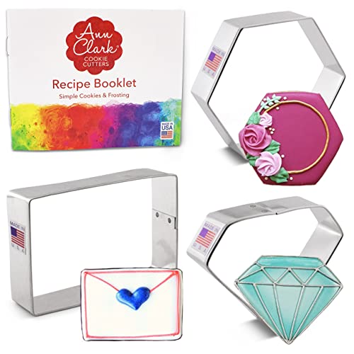 Ann Clark クッキーカッター 3ピース 幾何学模様 クッキーカッターセット レシピブックレット付き 長方形 六角