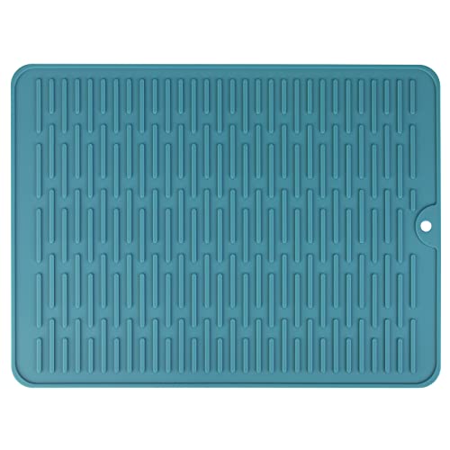 水切りマット キッチン 食器 乾燥用マット 大判シリコン 速乾 丸めて収納 断熱マット 滑り止 (ブルー)