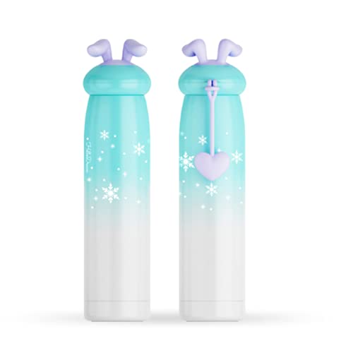 TELMUUN 水筒 子供直飲みステンレスク 真空断熱スポーツボトルかわいいうさぎ外観320mlミント グリーン(ディー