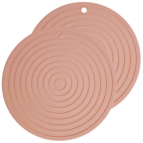 耐熱鍋敷き 丸型 2枚セット 24cm シリコン製 薄型 フローマーク 栓抜き 滑り止め 北欧風 快速放熱 壁に掛けられ