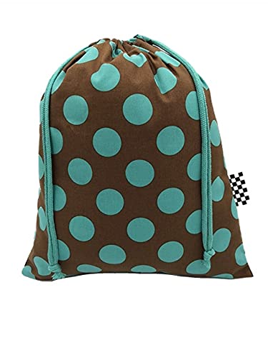 布くろ屋 ハンドメイドきんちゃく袋 (L, ビッグドットブラウン×ターコイズ)