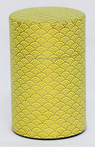 江東堂高橋製作所 茶筒 和紙和染缶 長型100g 青海波 #87 黄色