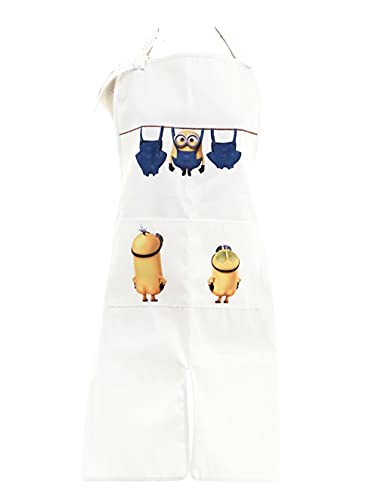 撥水加工エプロンしわになりにくいミニオンエプロンサイズ調整可能 (白)
