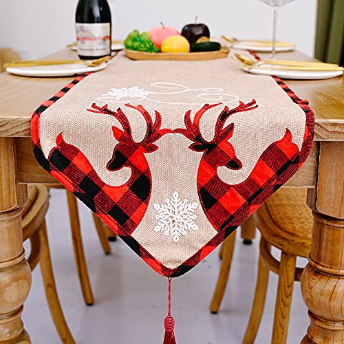 Ewolee テーブルランナー クリスマス 飾り 180×35cm おしゃれ クリスマスのテーブルランナー (エルク柄)