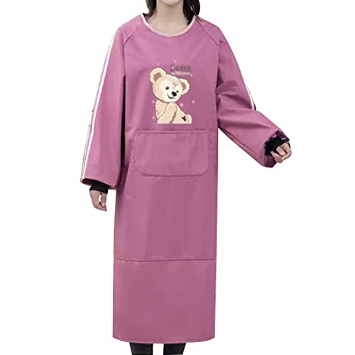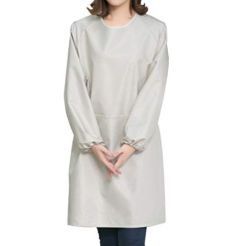 sherelly ロング割烹着スモック保育士 かっぽう着 女性用 エプロンメンズ ポケット付き おしゃれ 可愛い 防水