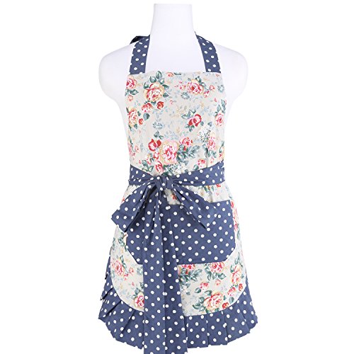 Neoviva[Kathy]レトロ花柄ママ&キッズ親子エプロン 女性用かわいいドレス型エプロン ドット柄 家庭用 家事料