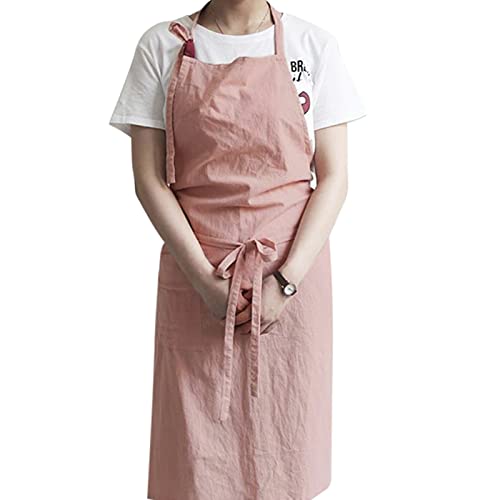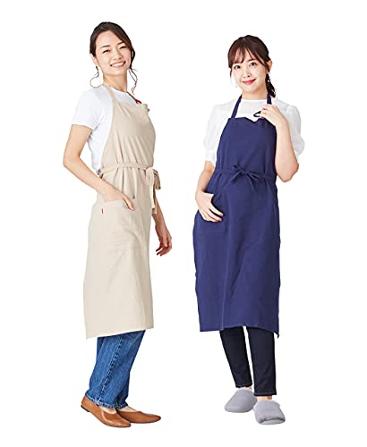 XMSSAA エプロン リネン カフェ風 夏用薄いエプロン 無地 ロングエプロン おしりが隠れる ポケット付き 首掛け
