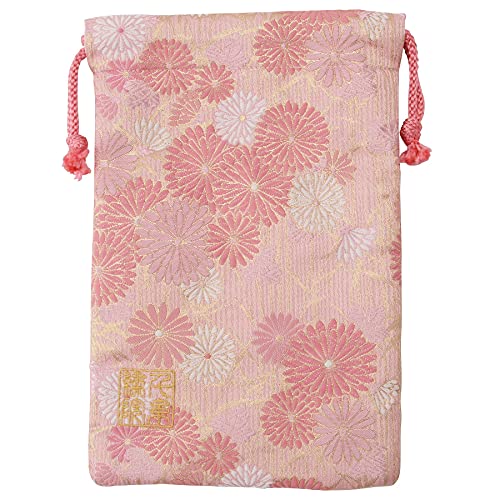 千糸繍院 西陣織 金襴 巾着袋(裏地付き) 桃笹菊 中サイズ