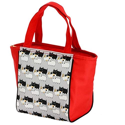 ランチバッグ 猫3兄弟 保温 保冷バッグ お弁当袋 猫柄 ねこ ki-107 (レッド)