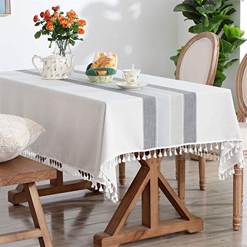 長方形4シートテーブルクロスコットンリネン刺繍ステッチタッセルテーブルカバー用家の装飾パーティー結婚