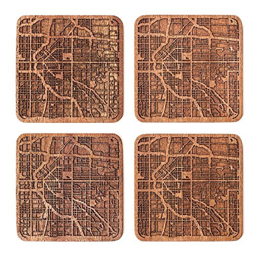 デンバーマップコースター、4枚セット、シティマップ木製コースター、オリジナルデザイン手作りギフト