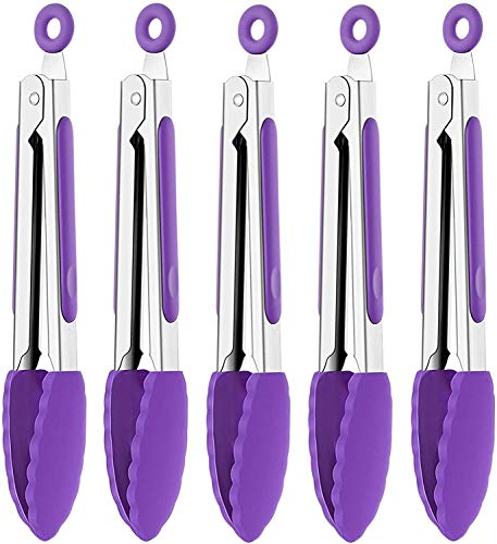 キッチントングシリコンチップ付きミニシリコントング小さなサービングトングサラダ、グリル、揚げ物、調