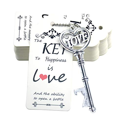 Makhry 52pcsヴィンテージスケルトンキーボトルオープナー付きラブハートエスコートありがとうタグとキーホル