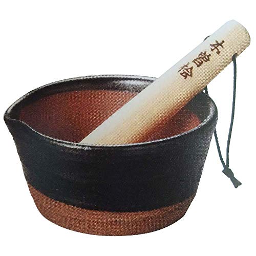 萬古焼 溝のないすり鉢 (半黒) 小 国産すりこ木付き