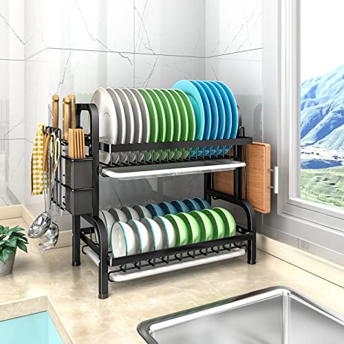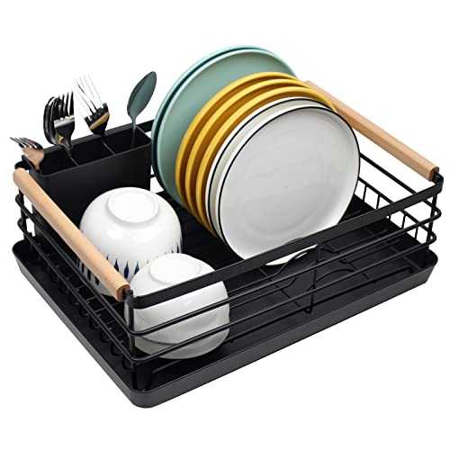 Poofzy 食器 水切りラック ステンレス、 水切りカゴ 厚めのトレー付き キッチン用 (黒)