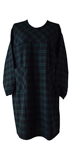 ヨーク割烹着 タータンチェック 日本製 大きいサイズ(ネイビー×グリーン)