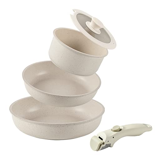 CAROTEフライパンセットIH&ガス火対応5点 取っ手のとれる 一人暮らしセット マーブルコート くっつかなく洗い