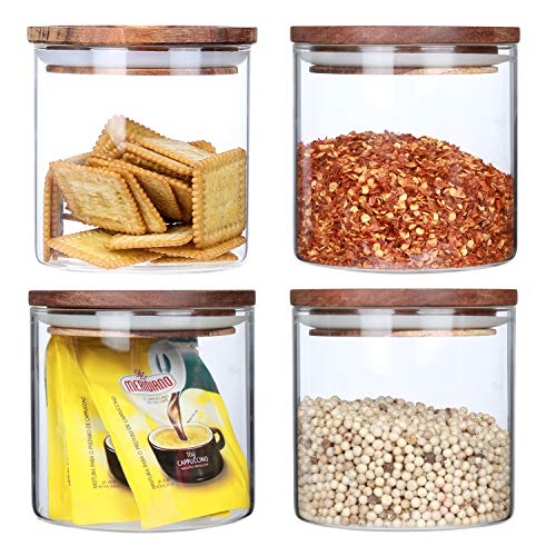 KKC お菓子密閉保存容器 ガラス 木製の蓋 ナッツ、スナック保存瓶 食品貯蔵 ガラスびん 密封 気密 4個セット 55