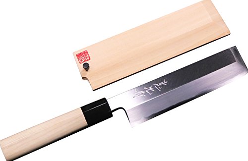 恵比寿刃 匠 -takumi- / 江戸薄刃包丁 180mm 堺 高級 和包丁 安来鋼白紙1号 上霞研ぎ 水牛角口金 サヤ付 包丁 プロ