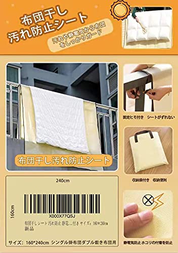 布団干しシート 汚れ防止 静電気防止 固定ヒモ付き 収納袋付き サイズ:160*240cm