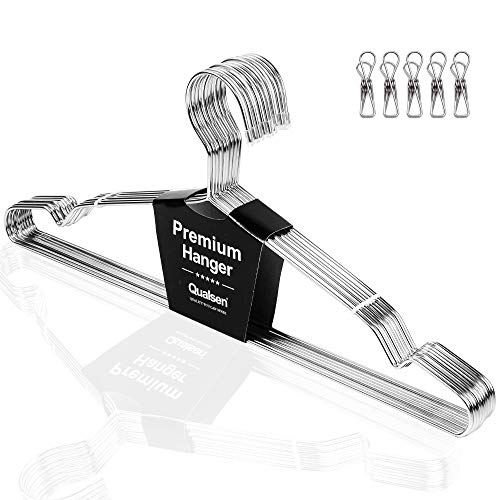Qualsen ハンガー ステンレスハンガー 洗濯ハンガー 錆びにくい すべらない 曲がらない くぼみ付 耐久・頑丈 お