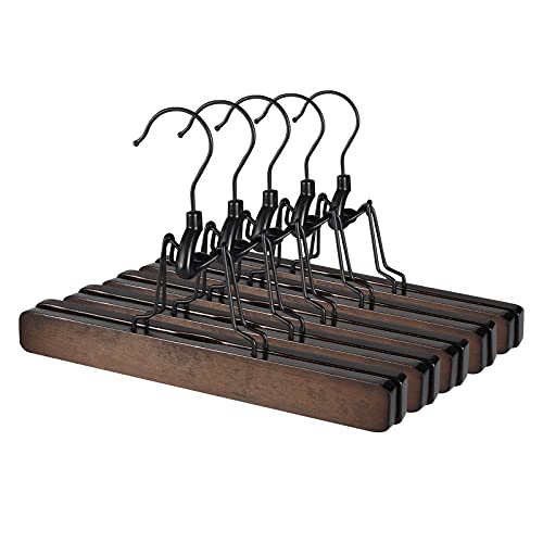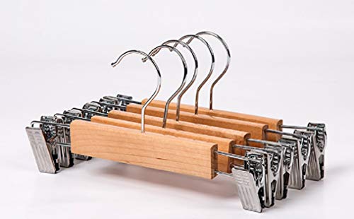 スカートハンガー胡桃色 5本組セットズボンハンガー天然木製 跡がつかない 収納ハンガー