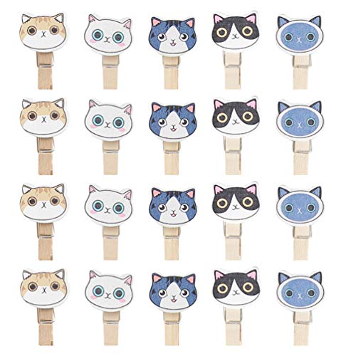 NUOLUX 木製クリップ ミニ フォトクリップ 猫 洗濯小物 写真用に 飾り付け DIY 手芸用 洗濯バサミ 木製ピンチ 30