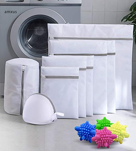 amxus 洗濯ネットランドリーネット洗濯袋セット8枚入+2洗濯 ボール(色がランダム)再利用可能な丈夫な細かい