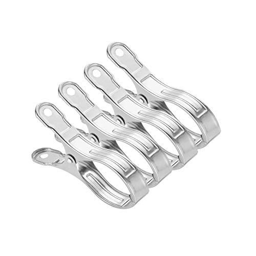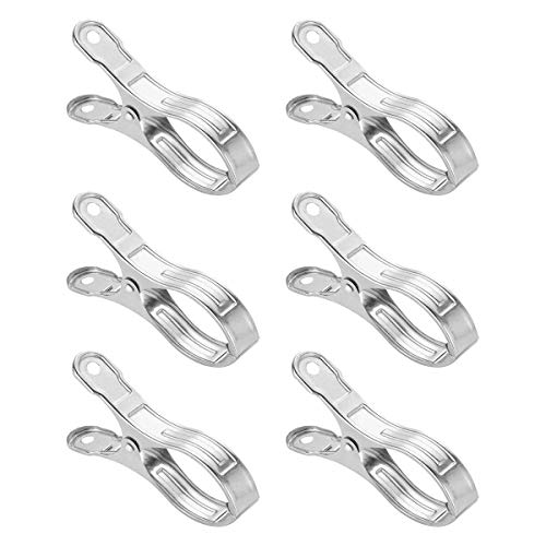 6ピースビーチタオルクリップステンレス鋼風耐性プールカバークランプビーチチェアタオル服毛布、シルバー